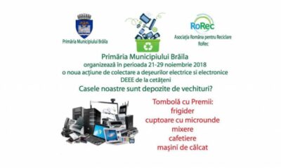 • Primăria Municipiului Brăila organizează o nouă campanie de colectare selectivă a aparatelor electrice şi electronice vechi sau stricate, becuri şi baterii • brăilenii care vor...