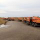 * zeci de camioane de mare tonaj au fost mutate de constructorul Spedition UMB de pe șantierul Autostrăzii A3 pe șantierul deschis între Brăila și Galați...
