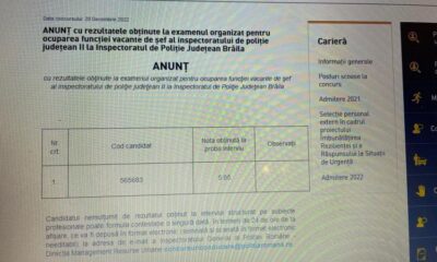 * marți, 20 decembrie a avut loc concursul pentru ocuparea funcției vacante de șef la Inspectoratul de Poliție Județean (IPJ) Brăila, singurul înscris fiind actualul șef...