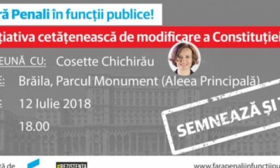 * aceasta va fi prezentă, de la ora 18.00, în Parcul Monument, pentru strângerea de semnături în cadrul campaniei “Fără penali în funcții publice!” Deputatul...