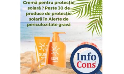 • InfoCons – Protecția Consumatorilor trage un semnal de alarmă în legătură cu produsele periculoase de tip „protecție solară” identificate în Sistemul de Alertă European •...