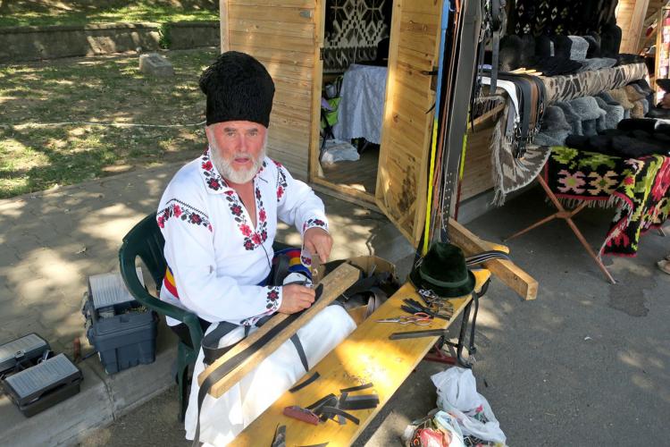 Demonstraţii făcea, la taraba alăturată, şi Constantin Ciobotăriţă, meşter cojocar şi curelar venit de la Botoşani, împreună cu soţia sa Emilia. Cei doi au mai fost la târgurile din Brăila şi spun că le place atmosfera de aici, chiar dacă nu e întocmai ca la alte târguri de prin ţară, unde chiar se pune accent pe meşterii populari autentici, nefiind acceptate şi “chinezăriile”. Indiferent de vecinii de târg, Constantin Ciobotăriţă aduce întotdeauna cu el o notă de veselie cum doar un moldovean get-beget ştie să o facă. Îmbrăcat în cămaşă tradiţională şi cu o cuşmă din blană de oaie pe cap în ciuda caniculei, meşterul botoşănean stă cât e ziua de lungă pe scăunelul său de lemn şi meştereşte la nişte curele, în timp ce soţia se tocmeşte cu muşterii care ar vrea să cumpere o căciulă de blană. “Avem surpriza să vedem copii care îşi trag părinţii de mânecă, să le ia o căciulă de oaie”, ne-a spus Constantin, bucuros că încă mai sunt tineri care au în adâncul sufletului întipărite rădăcinile originii lor româneşti.