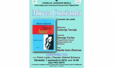 • sâmbătă, 1 septembrie 2018, ora 10.00, avocatul Mircea Constanda lansează cea de a noua sa carte, volumul de epigramă şi poezie “AMOR AMAR” Sâmbătă,...