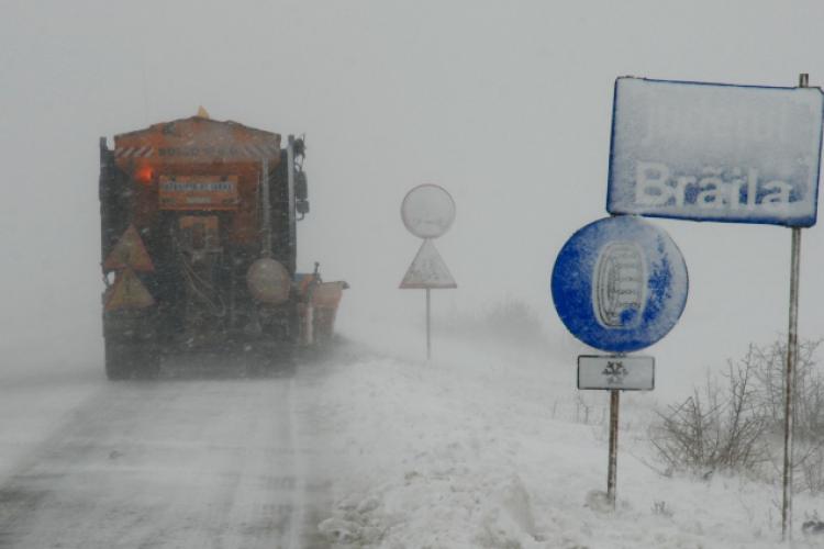 Cod roșu de vreme rea în județul Brăila. Sunt închise pentru circulație toate drumurile naționale, județene și podul peste Dunăre