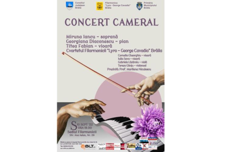 „Venirea toamnei anunță începutul stagiunii camerale, cu un concert deosebit oferit de Filarmonica „Lyra-George Cavadia” Brăila, în care invitații Miruna Iancu – soprană, Georgiana Diaconescu – pian și Titea Fabian – vioară, vor fi parteneri de scenă cu instrumentiștii cvartetului Filarmonicii”, precizează prof. Alexandra Gurgu, secretar muzical al Filarmonicii „Lyra-George Cavadia” Brăila.