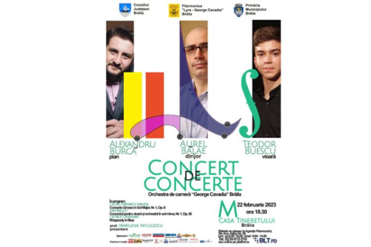 Filarmonica „Lyra – George Cavadia” Brăila, în parteneriat cu Consiliul Județean și Primăria Municipiului Brăila organizează miercuri, 22 februarie 2023, de la ora 18.30, la Casa Tineretului de pe Calea Călărașilor, evenimentul muzical „Concert de concerte”, prezentat de prof. Marilena Niculescu.