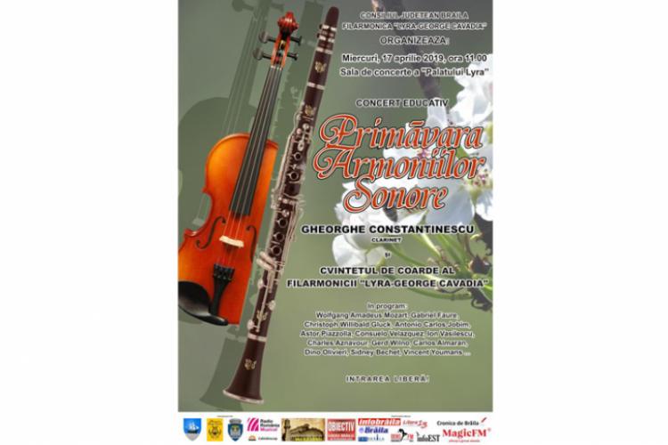 Din acest an, Filarmonica “Lyra-George Cavadia” Brăila începe programul de concerte educative pentru elevi. Primul eveniment de acest gen va fi în data de 18 aprilie 2019, ora 12:00, în Sala de Concerte “Doctor Nicu Teodorescu” a Palatului “Lyra”. În acest sens, la “Primăvara armoniilor sonore” sunt aşteptaţi elevi şi profesori din toate şcolile şi de la toate disciplinele, pentru a se relaxa şi pentru a descoperi tainele muzicii alături de clarinetistul Gheorghe Constantinescu şi Cvintetul de coarde al filarmonicii. Prezentarea concertului aparţine Laurei Sava, doctor muzicolog. Intrarea este liberă.