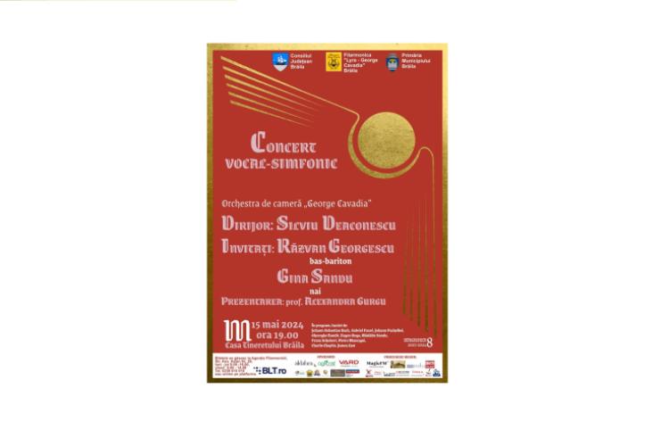 Filarmonica „Lyra – George Cavadia”, în parteneriat cu Consiliul Județean Brăila și Primăria Municipiului Brăila organizează miercuri, 15 mai, ora 19.00, la Casa Tineretului, un Concert vocal-simfonic susținut de Orchestra de Cameră „George Cavadia”, dirijată de Silviu Deaconescu. Prezintă prof. Alexandra Gurgu, secretar muzical al Filarmonicii „Lyra – George Cavadia” Brăila. Biletele pentru concert se pot achiziționa de la Agenția Filarmonicii „Lyra – George Cavadia”, Strada Ana Aslan nr. 29, Brăila, sau online, de pe platforma BLT.ro.