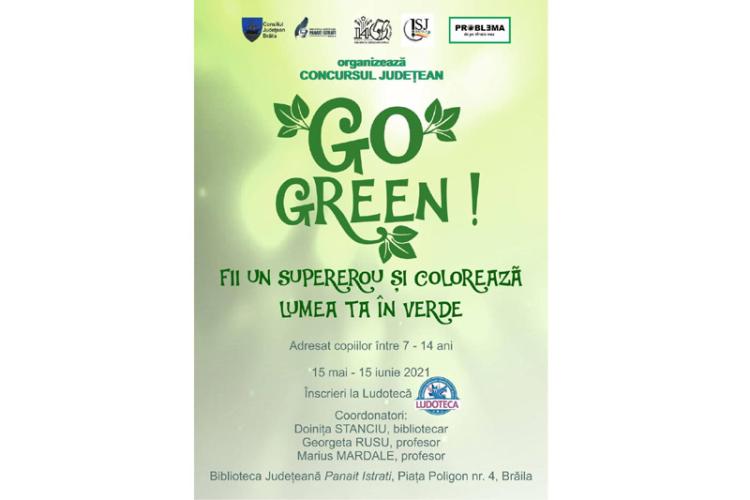 Biblioteca Județeană ”Panait Istrati” Brăila, în colaborare cu Asociația “Problema de pe strada mea” și Inspectoratul Școlar Județean Brăila, vă invită la Concursul de desene cu tematică ecologică ”Go green! Fii un supererou și colorează lumea ta în verde!”.