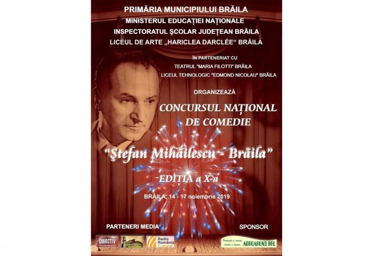 La Concursul Naţional de Comedie “Ştefan Mihăilescu Brăila”, la categoria participarea directă s-au înscris 61 de elevi pentru secţiunile “Interpretare individuală” şi “Trupă de teatru”. Elevii provin de la 10 licee de artă din ţară: Brăila, Buzău, Bucureşti, Constanţa, Cluj, Galaţi, Iaşi, Târgu Jiu, Târgu Mureş şi Tulcea, cu secţie de Arta actorului. La participarea indirectă s-au înscris elevi de liceu din palate şi cluburi ale copiilor şi din licee teoretice şi tehnologice din ţară. Aceştia vor participa la secţiunea “Interpretare individuală cu Monolog comic”. Preşedintele de onoare al juriului este Florentin Gabriel-Brăila, fiul maestrului Ştefan Mihăilescu-Brăila, care de 10 ani este alături de organizatori şi de elevii participanţi pentru a decerna trofeul “Ştefan Mihăilescu Brăila”. Juriul concursului are în componenţă profesori universitari din UNATC Bucureşti, Universitatea Naţională de Arte “G. Enescu” Iaşi şi Universitatea de Arte din Târgu Mureş.
