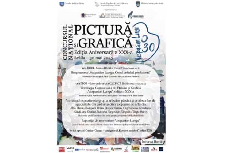 Sub sloganul „30 de ani de artă, 30 de ani de onoare”, Școala Populară de Arte „Vespasian Lungu”, instituție subordonată Consiliului Județean Brăila, organizează ediția aniversară a Concursului Național de Pictură și Grafică „Vespasian Lungu”, eveniment cultural de tradiție care reunește anual zeci de tineri artiști talentați din toată țara. Ajuns, anul acesta, la XXX de ediții consecutive, concursul aduce un omagiu profesorului și artistului Vespasian Lungu, figură emblematică a învățământului artistic brăilean. Concursul promovează, totodată, educația vocațională prin intermediul artelor plastice. El se adresează cursanților școlilor populare de artă din țară și este structurat pe două secțiuni: Seniori (pictură și grafică) și Juniori.
