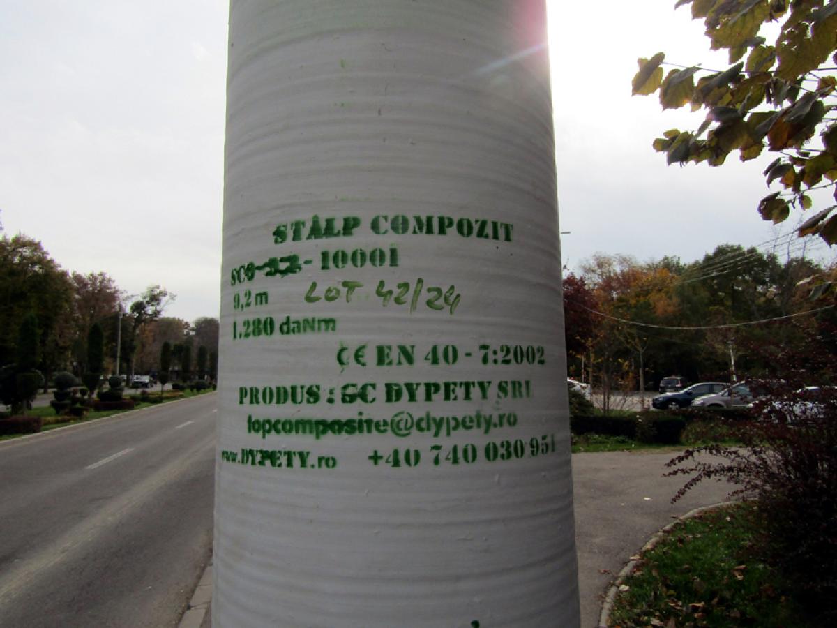 • sunt făcuți din material compozit și cântăresc mult mai puțin decât stâlpii clasici, fiind mai ușor de transportat și manevrat • rămâne de văzut cât vor fi de rezistenți, sub multitudinea de cabluri cu care vor fi încărcați • în municipiu au fost montați, recent, astfel de stâlpi în zona Spitalului 3 din cartierul Hipodrom, acolo unde un stâlp de beton fusese avariat în urma unui accident rutier