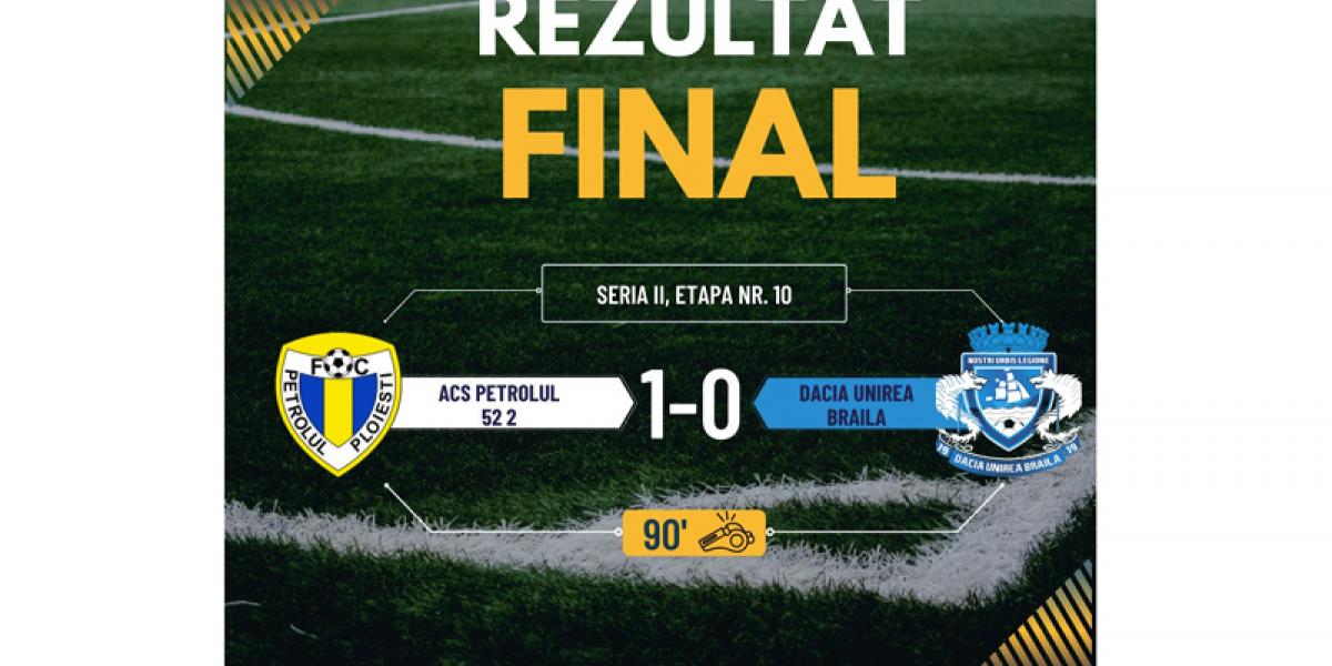 În etapa a 10-a a Ligii a III-a, Petrolul 2 Ploiești a deschis repede scorul prin Paraschiv (min. 11), 1-0, și putea să-și dubleze avantajul la ocazia lui Raphinha. Prima mare ocazie a oaspeților a fost irosită de Eloh care a șutat slab, în minutul 32, și tot el nu a găsit spațiul porții, cu un șut de la 22 de metri în minutul 42 și la pauză a fost 1-0 pentru echipa gazdă.