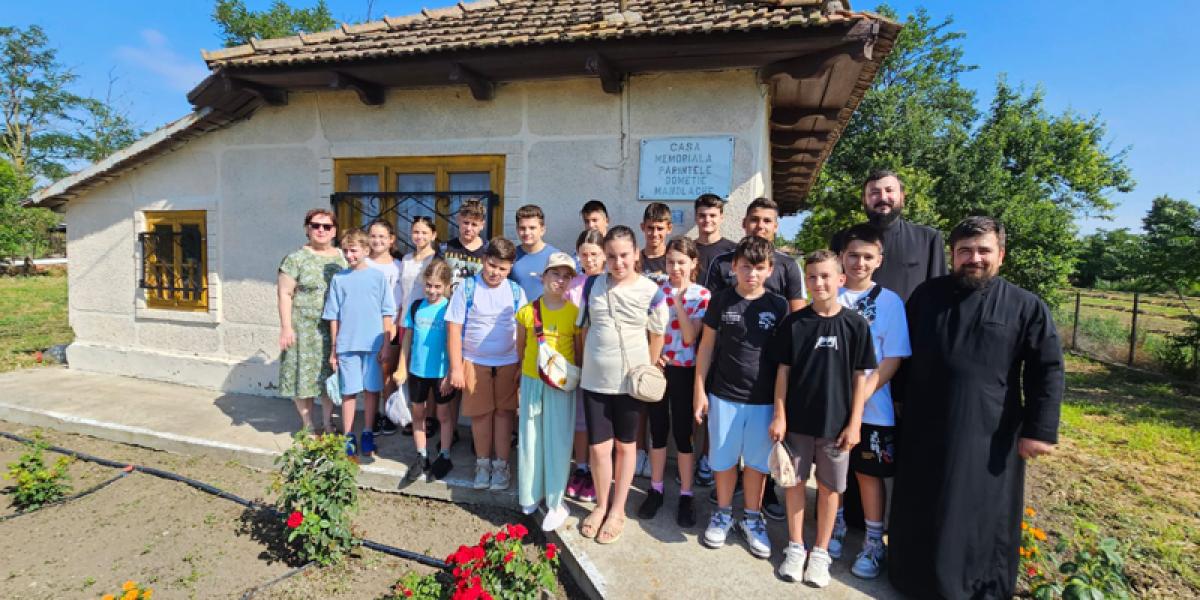 „La primele ore ale dimineții, grupul de copii s-a adunat în biserică unde a rostit rugăciunea pentru binecuvântarea călătoriei. Prima destinație i-a purtat pe tinerii pelerini la Casa Memorială a Sfântului Dometie cel Milostiv, de la Târlele Filiu. Aici, au fost întâmpinați cu multă căldură de către preotul Radian Spânu, care le-a prezentat Casa Memorială, diverse documente, obiecte și veșminte ale Sfântului Dometie”, precizează pr. Rareș Bucur, purtătorul de cuvânt al Eparhiei Dunării de Jos. Mai departe, grupul de copii s-a închinat în biserica parohială din satul Târlele Filiu, locul unde s-a format duhovnicește tânărul Stelian Manolache, cel ce avea să devină, mai târziu, părintele Dometie, duhovnicul Mănăstirii Râmeț.