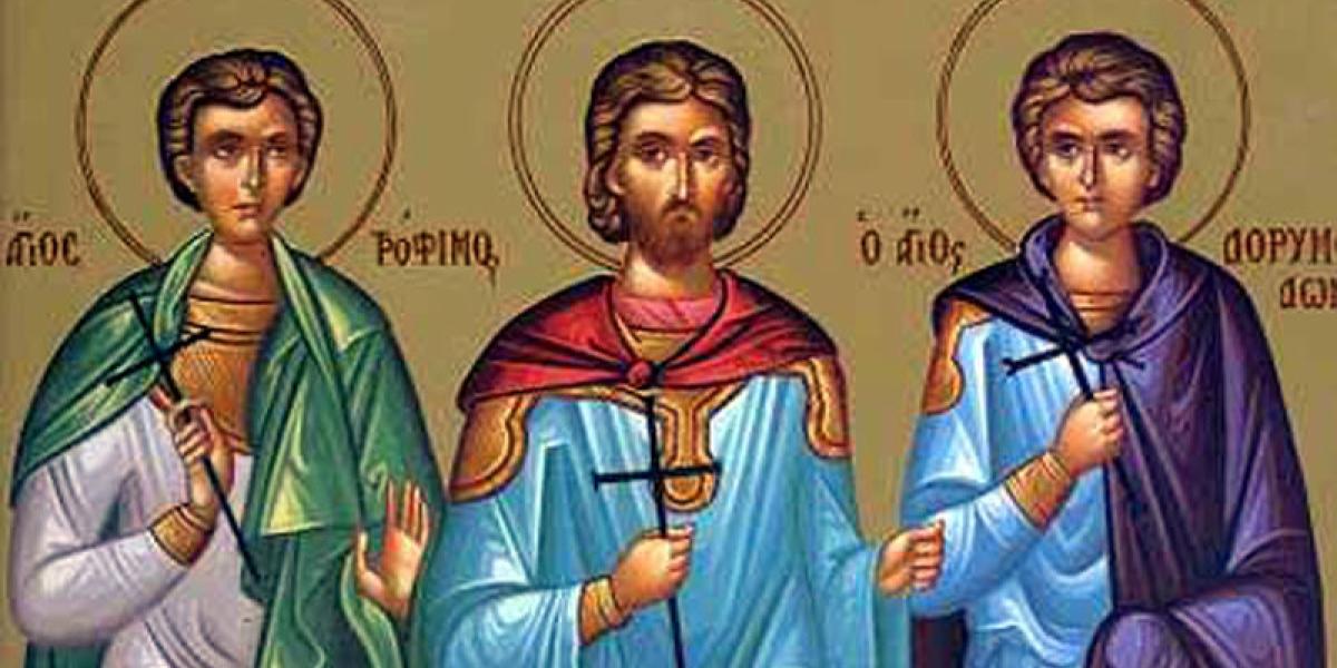 Sfinţii Mucenici Trofim, Savatie şi Dorimedont au trăit şi au pătimit în timpul împăratului roman Probus (276-282 d.H.), care i-a persecutat, ca atâţia alţii, pe mărturisitorii creştini. La acea vreme, creştinii Trofim, Savatie şi Dorimedont au sosit în marea cetate a Antiohiei, în toiul unui mare festival păgânesc, când se aduceau jertfe zeului Apollo. Pentru că nu au participat la aducerea jertfelor, credincioşii au fost judecaţi, torturaţi şi aruncaţi în temniţă. Mai apoi, Trofim şi Dorimedont au fost decapitaţi, iar Savatie şi-a dat duhul pe când era închis în temniţă. Şi aşa au proslăvit cei trei sfinţi pe Dumnezeu.