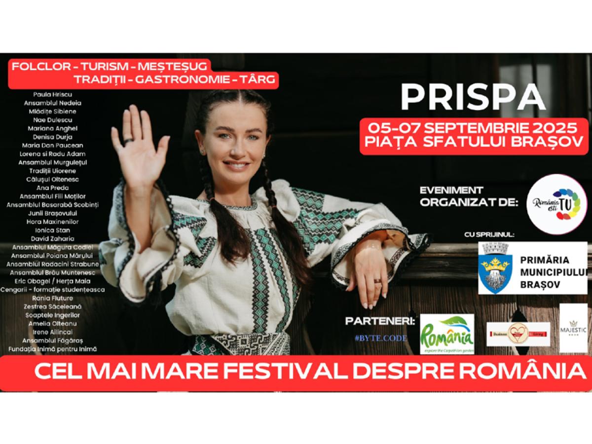 Centrul Județean pentru Conservarea și Promovarea Culturii Tradiționale Brăila participă în intervalul 5-7 septembrie 2025 la Festivalul ”Prispa-România ești Tu”, din municipiul Brașov, un festival al tradițiilor vii și al identității românești, un proiect de țară, dedicat celor care aleg să se implice mai mult, din dorința de a contura un viitor mai bun pentru generațiile viitoare.