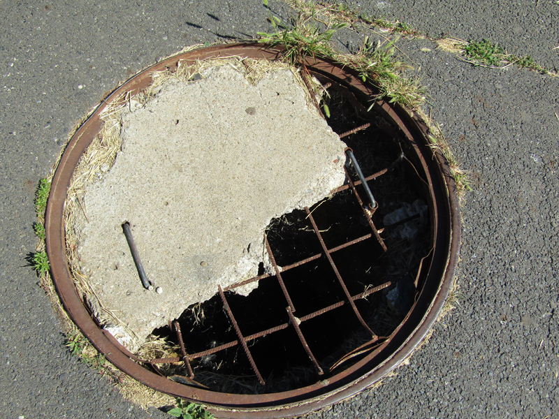 Capacele de canalizare din fontă au fost mereu ţinta hoţilor şi a căutătorilor de fier vechi, fenomenul cunoscând o amploare serioasă după 1990. Motiv pentru care compania de apă, pentru diminuarea pagubelor produse şi descurajarea vandalilor, a trecut la confecţionarea din beton a unor astfel de capace. În toamna anului 2022, ziarul nostru semnala distrugerea unui capac din beton de la intersecția Bulevardului Cuza cu strada Mihai Eminescu, iar CUP Dunărea a procedat la aducerea la cotă şi încastrarea în beton a capacului, pe 10 ianuarie 2023. Acesta trebuia să reziste ani de zile, însă în vara aceluiași an deja era ”terminat”. Compania în cauză a contrazis faptul că distrugerea capacului din beton în luna august s-ar fi datorat lucrului de proastă calitate, precizând că acel capac gros de 10 cm a fost spart intenţionat pentru a i se fura armătura metalică.