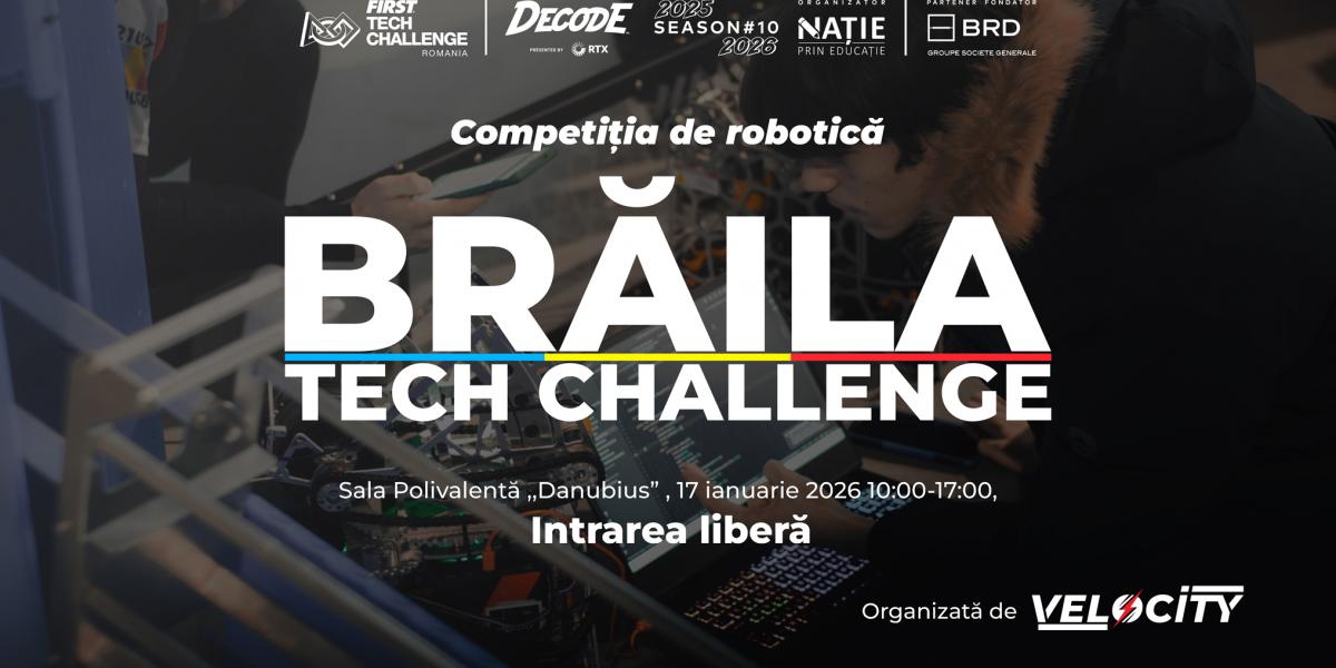 Brăila devine, pentru a doua oară, scena unor confruntări spectaculoase între minți tinere și roboți ingenioși. Braila Tech Challenge, ediția a II-a, competiție organizată de echipa de robotică Velocity, va reuni sâmbătă, 17 ianuarie 2026, la Sala Polivalentă ”Danubius”, echipe de top din întreaga țară. Printre participanți se numără vicecampioni mondiali, doborâtori de recorduri și formații cu rezultate remarcabile în competiții naționale și internaționale. Evenimentul face parte din programul internațional FIRST Tech Challenge, implementat în România de Asociația Nație Prin Educație, o organizație non-profit fondată de Dana Războiu care, din 2016, susține educația STEM (Știință, Tehnologie, Inginerie, Matematică) pentru peste 5.000 de elevi de liceu și mentorii lor. Prin competițiile regionale și naționale pe care le organizează anual, asociația cultivă pasiunea pentru tehnologie și inovație în rândul tinerilor din întreaga țară. ”Braila Tech Challenge nu este doar o competiție, ci o investiție în viitor. Ne dorim ca fiecare copil care intră în sală să plece inspirat, curios și motivat să descopere tehnologia. Faptul că avem la Brăila echipe de top din toată țara ne arată că suntem pe drumul cel bun”, au declarat organizatorii din cadrul echipei Velocity.