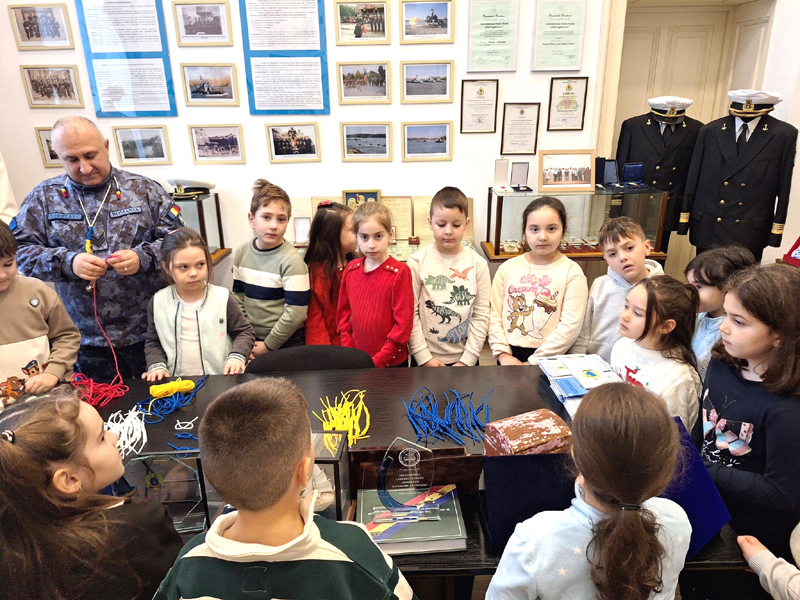 Elevii clasei I „Steluțele” de la Școala Gimnazială „Fănuș Neagu” Brăila, însoțiți de doamna învățătoare, au vizitat, miercuri, 17 decembrie, Sala de Tradiții a Comandamentului Flotilei Fluviale „Mihail Kogălniceanu”, de pe Strada Împăratul Traian. Cei mici au descoperit viața de marinar, au aflat povești interesante și au avut parte de surprize frumoase oferite de militarii marinari prezenți la Comandament. Elevii au admirat, totodată, exponatele din Sala de Tradiții a Comandamentului Flotilei Fluviale și au învățat să confecționeze brățări și noduri marinărești. A fost o experiență educativă și plină de emoție, trăită cu zâmbete și curiozitate.