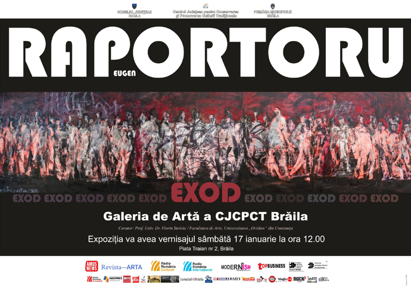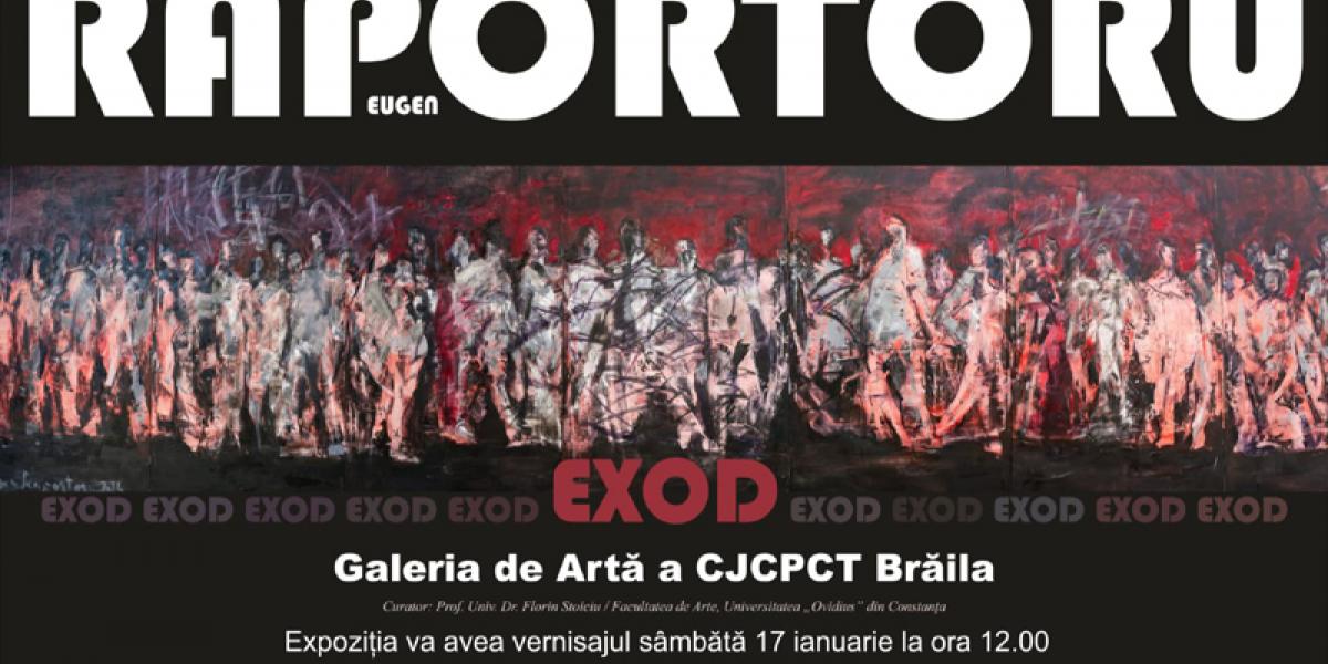 Consiliul Judeţean Brăila, Centrul Judeţean pentru Conservarea şi Promovarea Culturii Tradiţionale și Primăria Municipiului Brăila, alături de Uniunea Artiștilor Plastici din România-Filiala Brăila organizează sâmbătă,17 ianuarie, de la ora 12:00, la Galeria de Artă din Piața Traian nr. 2 - spațiu dedicat, prin excelență, promovării artei și a patrimoniului cultural - vernisajul Expoziției personale de pictură „Exod”. Este vorba de o prezentare inedită a lucrărilor artistului plastic Eugen Raportoru, membru al Uniunii Artiștilor Plastici din România.