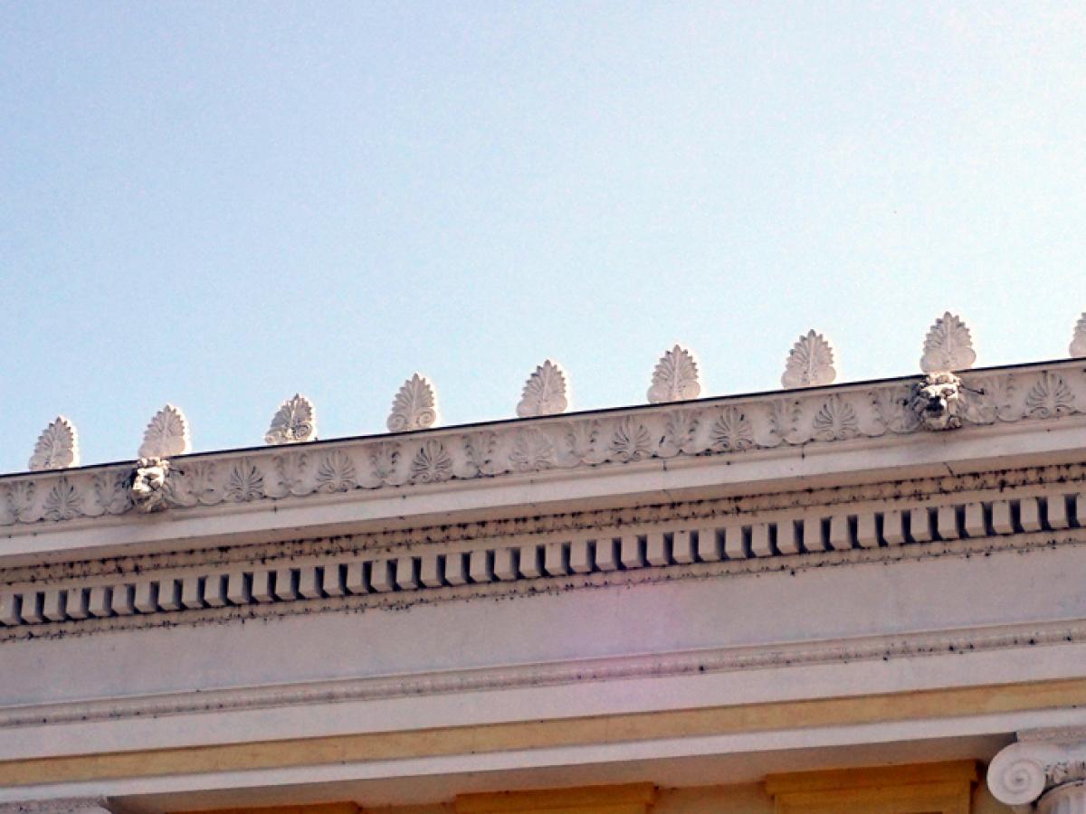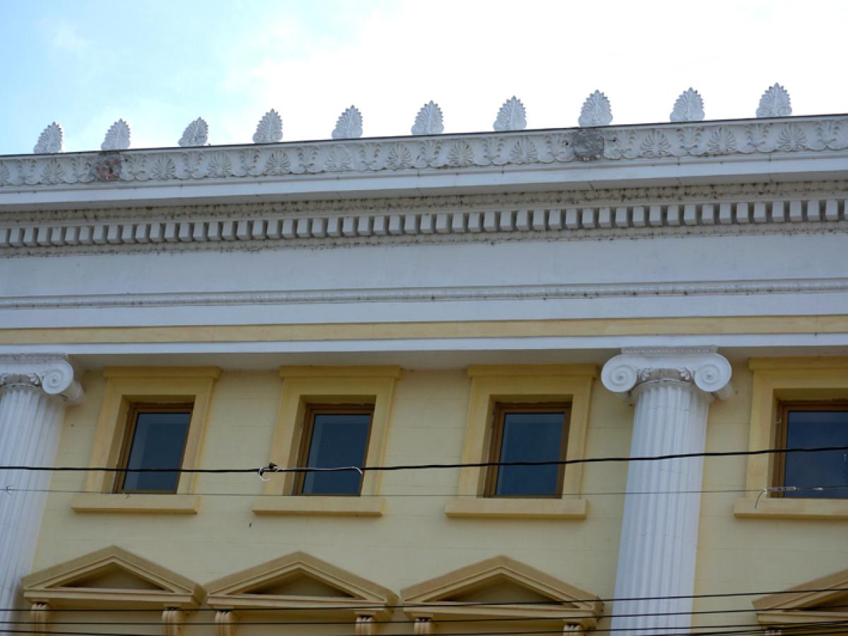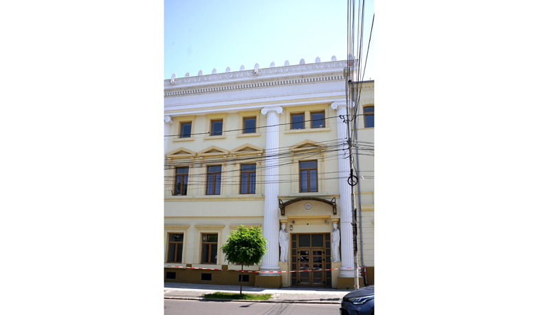 • deși imobilul a beneficiat relativ recent de o cosmetizare a fațadei, elementele decorative montate la înălțime au început să cadă pe trotuar • zilele trecute, zona era încercuită cu benzi de ocolire, pentru protecția pietonilor • Poliția Locală a somat actualul proprietar să ia măsuri pentru îndepărtarea pericolului și, din câte se pare, firma în cauză s-a conformat, promițând totodată o reabilitare mai de calitate