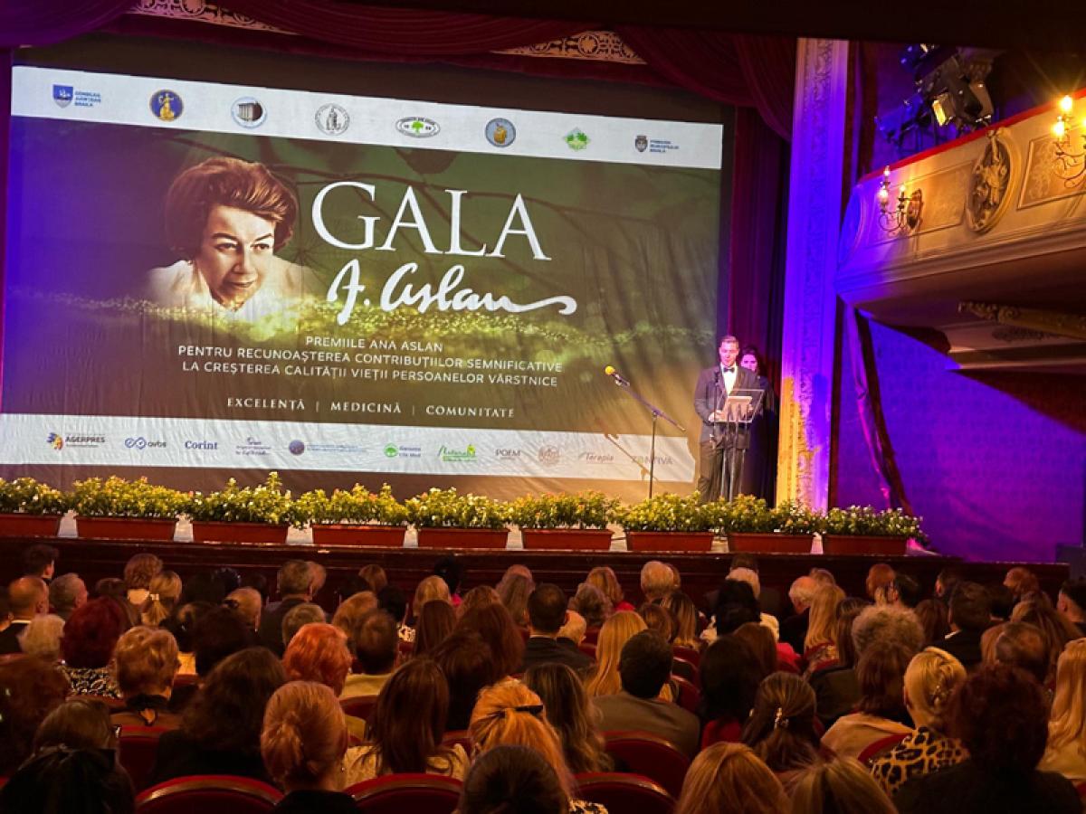 Teatrul ”Maria Filotti” din Brăila a fost, sâmbătă seară, 11 octombrie, gazda unui eveniment de înaltă ținută științifică și simbolică – cea de-a doua ediție a Galei ”Ana Aslan”, organizată de Fundația ”Ana Aslan” în parteneriat cu Primăria Municipiului Brăila, orașul natal al celebrei savante care a pus România pe harta mondială a medicinei vârstei. Evenimentul a reunit personalități marcante din domeniile științei, medicinei, culturii și diplomației, într-un demers de recunoaștere a excelenței și a contribuțiilor semnificative la îmbunătățirea calității vieții persoanelor vârstnice.