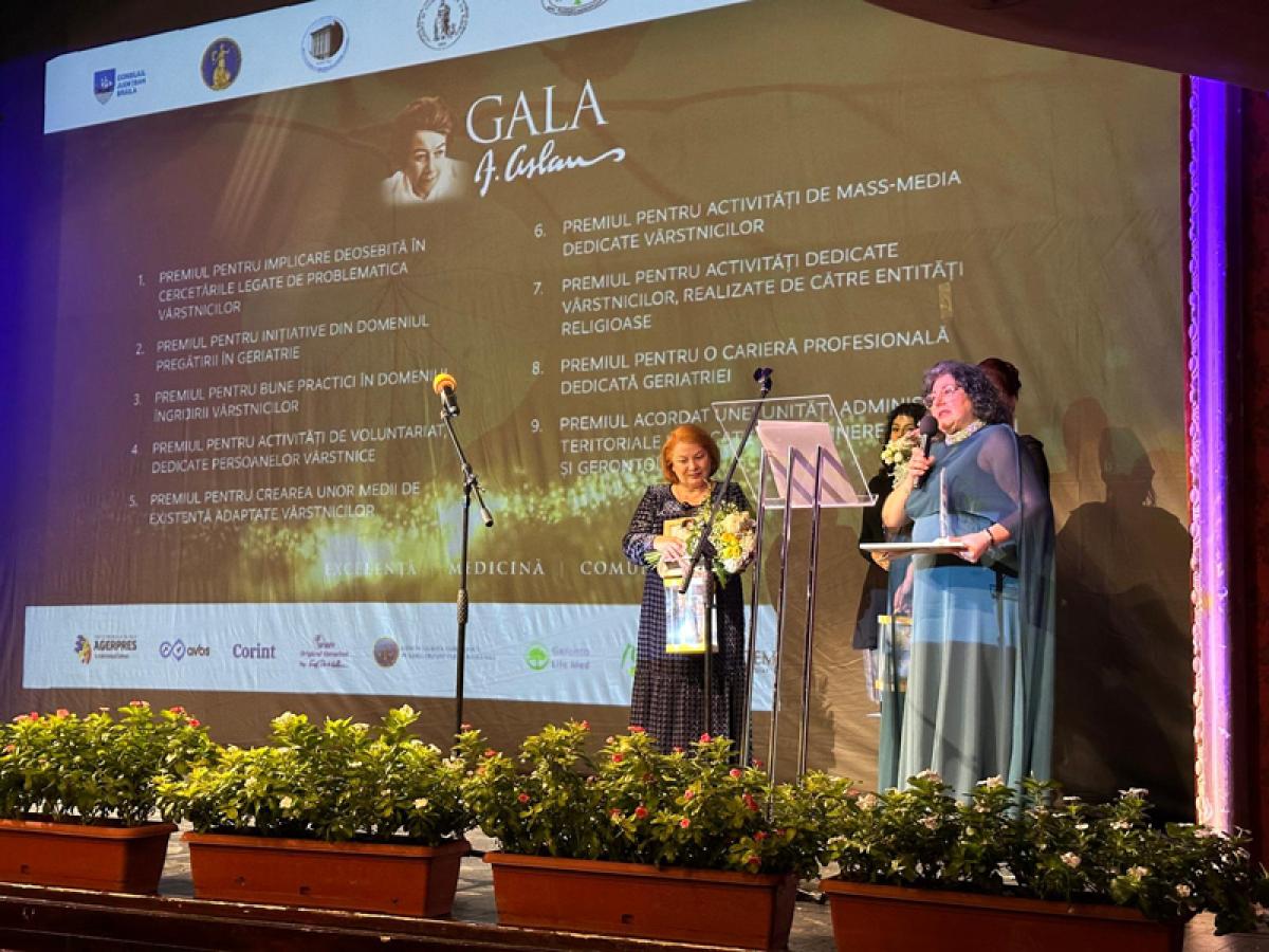 Premiul pentru bune practici în îngrijirea vârstnicilor a revenit dr. Nina Maria Diaconescu, fondatoarea Centrului GERONTO LIFE MED din București și fostă elevă a Anei Aslan, distinsă de Excelența Sa Enkeleda Baduni Mërkuri, Ambasadorul Republicii Albania în România. ”Este o onoare care ne încurajează să mergem mai departe — cu aceeași grijă, profesionalism și respect pentru fiecare senior aflat în îngrijirea noastră”, a spus dr. Diaconescu.