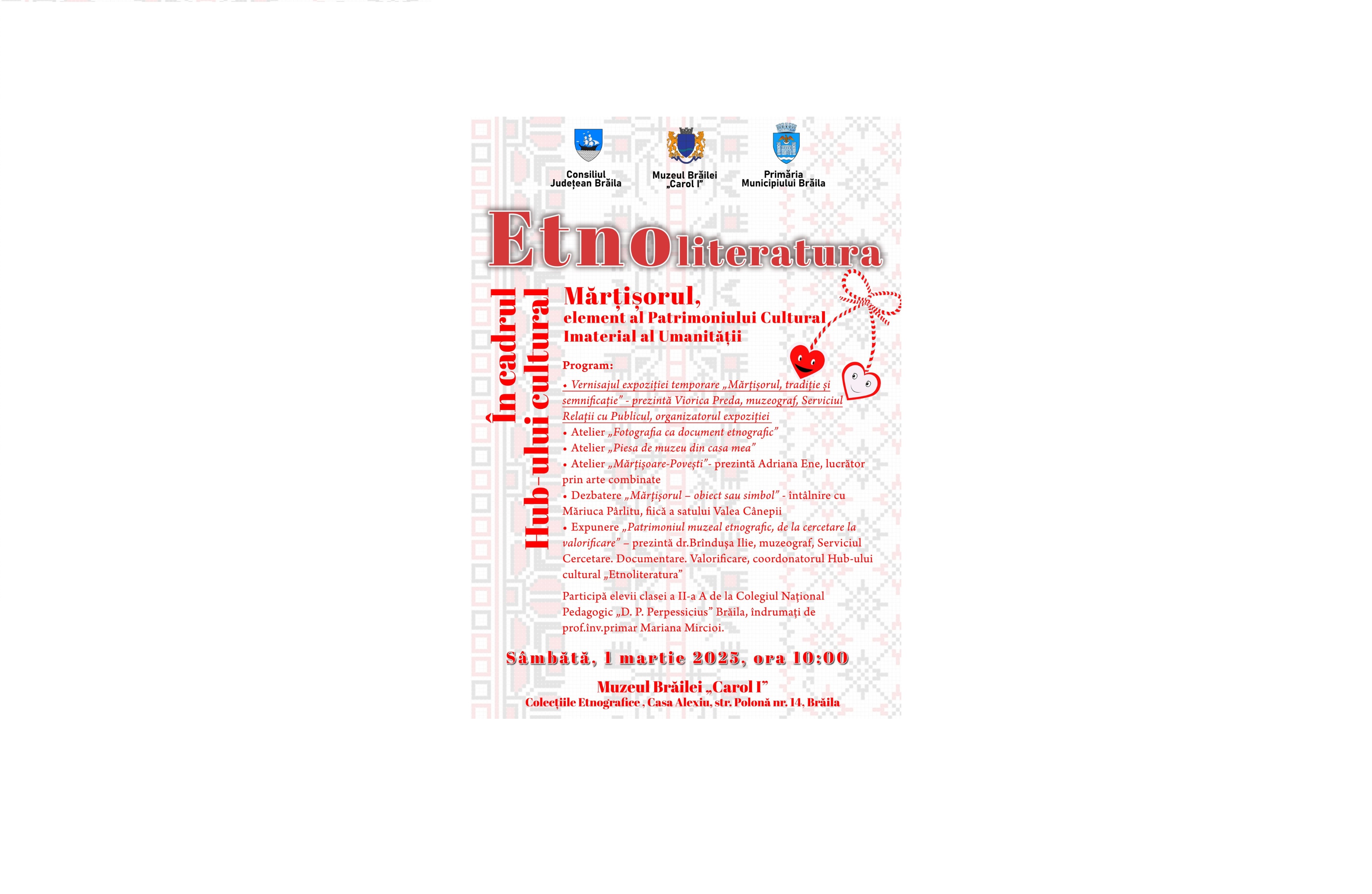 - Vernisajul expoziției temporare „Mărțișorul, tradiție și semnificație” - prezintă Viorica Preda, muzeograf, Serviciul Relații cu Publicul, organizatorul expoziției;