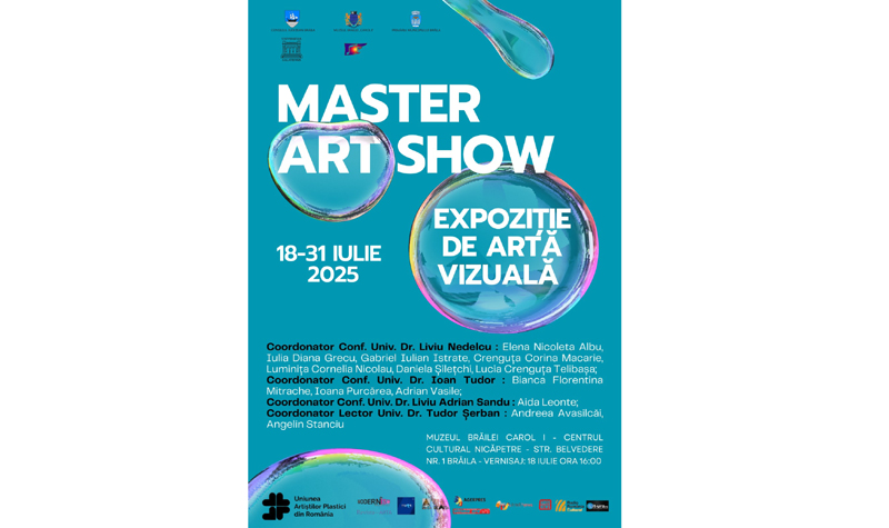 Vineri, 18 iulie, de la ora 16:00, la Centrul Cultural Nicăpetre, de pe Strada Belvedere nr. 1 (Casa Embiricos) din cadrul Muzeului Brăilei „Carol I”, va avea loc vernisajul Expoziției MASTER ART SHOW, un proiect artistic captivant care reunește pe simeze lucrările absolvenților Programului de studii Master - Pictură de la Facultatea de Arte a Universității „Dunărea de Jos” din Galați. Fiecare artist se prezintă cu un stil distinct și o viziune proprie asupra artei, ne explică organizatorii evenimentului cultural.