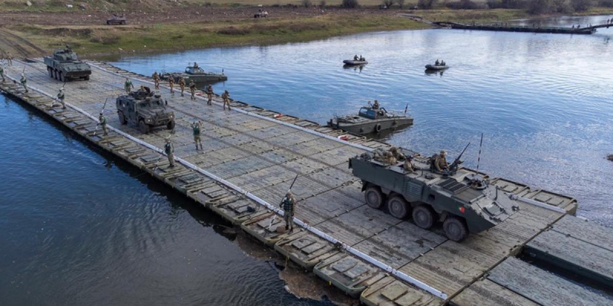 • geniștii au oferit sprijin pentru traversarea unui curs de apă, construind un pod din pontoane care a permis trecerea în siguranță a forțelor participante • exercițiul reunește peste 5.000 de militari din 10 state aliate, inclusiv România, cu 1.200 de mijloace tehnice de luptă - tancuri și transportoare blindate