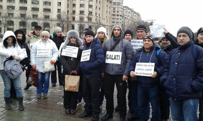 Mitingul de protest din Piaţa Constituţiei a fost organizat de Grupul Clienţilor cu Credite în Franci (CHF). Participanţii solicită Guvernului, Camerei Deputaţilor, Băncii Naţionale şi băncilor comerciale convertirea în lei a creditelor în valută, respectiv a celor în franci, euro şi dolari.