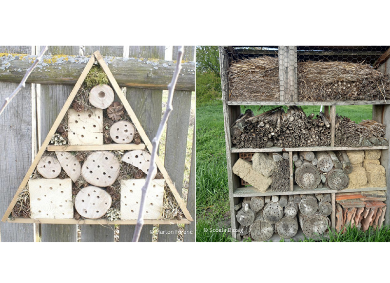 Dornici să vă apucați de lucru? Elevii din Școli Prietenoase cu Natura vă propun o serie de modele, de la construcții simple până la „hoteluri de lux” pe care le puteți face cu puțină îndemânare. Un hotel pentru insecte poate conține o mare varietate de materiale sau doar câteva, și poate fi mare și elaborat sau mic și simplu. Ca materiale aveți nevoie de plantele tubulare precum stuful, butuci din lemn în care au fost făcute găuri cu diametrul 3-10 mm și adâncime de 3-10 cm, conuri de pin și de brad, talaș, bucăți de cărămidă și altele. Dacă nu aveți la dispoziție tulpini de plante tubulare, puteți să reciclați hârtie, formând din ea tuburi.