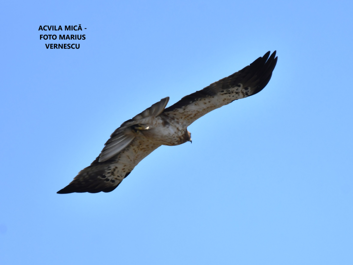 Acvila mică (Hieraaetus pennatus) - Este o specie de acvilă de talie mică, cu siluetă tipică cu 6 primare "digitale" și două forme distincte de penaj. Dimorfismul sexual este redus. Forma deschisă la culoare are penajul de corp de culoare albă pe partea ventrală, cu nuanțe maronii pe piept și cap, iar subalarele sunt albe, contrastând puternic cu penele de zbor de culoare închisă. Forma închisă la culoare are penajul corpului și subalarele de culoare maroniu închis și pene de zbor închise la culoare. Ambele forme au remigele primare interioare barate și mai deschise la culoare decât celelalte remige, contrast ușor de observat la indivizii în zbor. Penajul juvenililor apare și acesta sub cele două forme, asemănătoare cu ale adulților. Media de greutate a masculilor este de aproximativ 709 g, iar a femelelor este de 975 g, iar anvergura este de 110 - 132 cm.