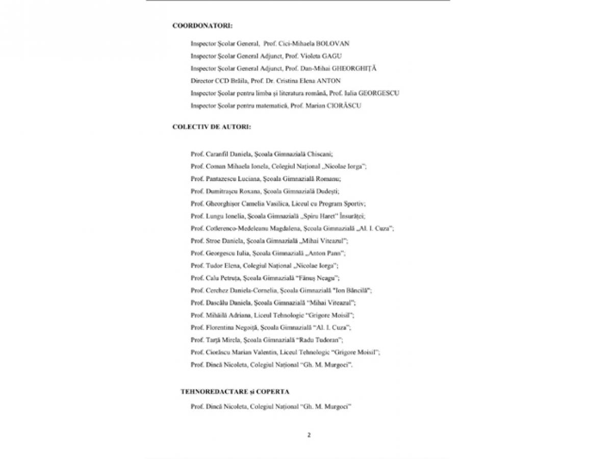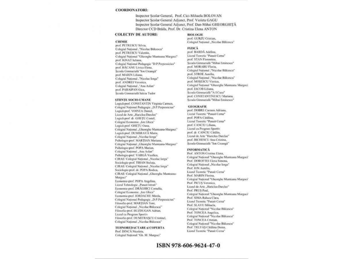 ”Elaborarea acestor ghiduri de pregătire reprezintă rezultatul unui efort colectiv deosebit, construit pe profesionalism, responsabilitate și dorința sinceră a cadrelor didactice din județul Brăila de a veni în sprijinul elevilor. Profesorii implicați au demonstrat nu doar competență științifică, ci și un angajament real față de actul educațional, lucrând cu rigoare și consecvență pentru a oferi materiale de calitate.