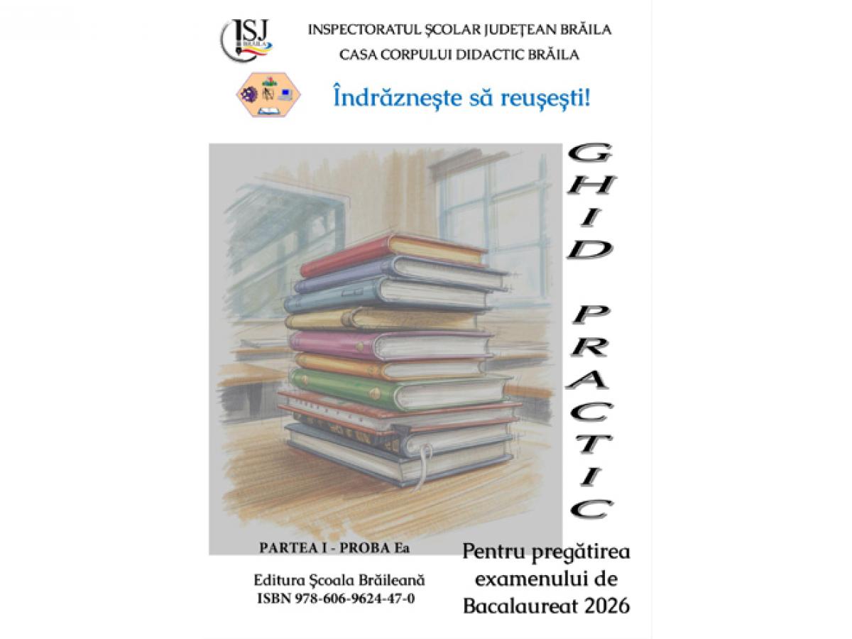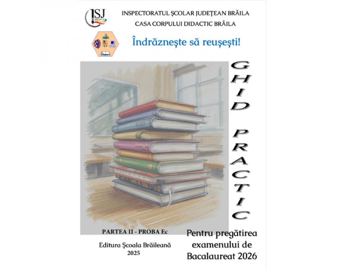 • Inspectoratul Școlar Județean Brăila lansează, în premieră, o serie de ghiduri practice pentru pregătirea examenelor naționale din 2026, realizate exclusiv de cadre didactice din județ • sub motoul „Îndrăznește să reușești!”, materialele publicate pe site-ul inspectoratului vin în sprijinul elevilor de clasa a VIII-a și a XII-a, oferind teste de antrenament și bareme adaptate cerințelor oficiale