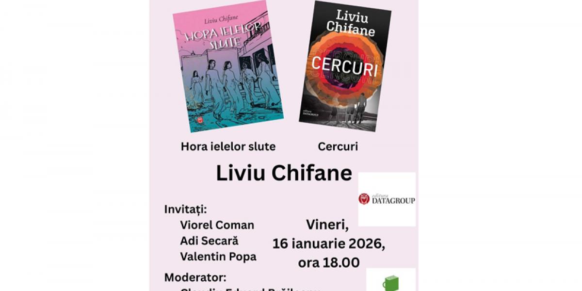 Profesor de limba și literatura română la Liceul cu Program Sportiv, scriitorul brăilean Liviu Chifane, neobosit promotor al culturii în orașul nostru - sufletul Cenaclului „Alter Ego”, de la Biblioteca Județeană „Panait Istrati” Brăila - își va lansa volumele „Hota ielelor slute” și „Cercuri” în ziua de vineri, 16 ianuarie, ora 18:00, la Librăria Cărturești, de la Brăila Mall. Evenimentul va fi moderat de dr. Claudiu Eduard Brăileanu, autorul avându-i ca invitați pe scriitorii Viorel Coman, Adi Secară și Valentin Popa, care vor prezenta cele două volume proaspăt scoase de sub tipar.
