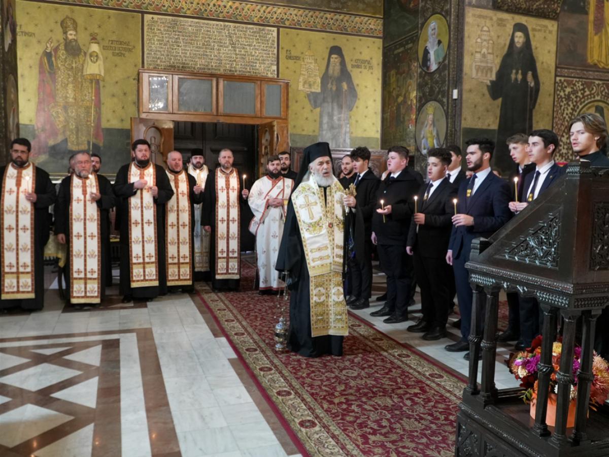 Ierarhul Dunării de Jos s-a rugat pentru odihna veşnică a domnitorului Alexandru Ioan Cuza şi a soţiei sale, Elena Doamna, precum şi pentru Episcopul Melchisedec Ştefănescu şi urmaşii săi în scaunul arhieresc de la Dunărea de Jos, trecuţi la cele veşnice. În cadrul slujbei, chiriarhul Dunării de Jos i-a pomenit, de asemenea, pe mitropolitul Antonie Plămădeală al Ardealului, la împlinirea a 99 de ani de la naşterea sa, şi pe Stavrofora Ierusalima Ghibu, proinstareţa Mănăstirii „Sfinţii Apostoli Petru şi Pavel” de la Râmeţ, judeţul Alba, trecută la Domnul în dimineaţa zilei de sâmbătă, 15 noiembrie 2025, la vârsta de 88 de ani.