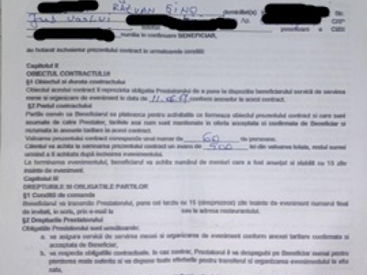 Un brăilean a ales să facă petrecerea de botez la localul „Corso” din Barieră, încheind contract cu administratorul pentru data de 11 iunie – 12 iunie, ora 3. Toate bune și frumoase, până când, în jurul orei stabilite prin contract, formația invitată să întrețină atmosfera petrecerii și-a încheiat programul și a plecat. Clienții s-au arătat extrem de deranjați de acest fapt și ar fi refuzat să achite nota de plată către restaurant, în valoare de 5.110 lei. Administratorul a sunat la Poliție, iar în câteva minute polițiștii și-au făcut apariția la fața locului. Tatăl copilului creștinat și încă un invitat, dar și administratorul localului au fost conduși la sediu pentru audieri. Tatăl s-a ales cu o amendă, pentru injurii. De asemenea, au fost îndrumați către instanță pentru a-și rezolva problema notei de plată, întrucât la mijloc este vorba de un contract semnat, așa cum ne-a declarat subinspector Laura Dan, purtătorul de cuvânt al IPJ Brăila.