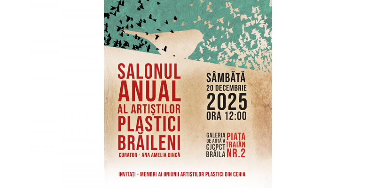 Sâmbătă, 20 decembrie, ora 12:00, la Galeria de Artă a Centrului Județean pentru Conservarea și Promovarea Culturii Tradiționale (Centrul de Creație) Brăila are loc vernisajul Salonului Anual al artiștilor plastici brăileni. Curator al prestigioasei expoziții - rod al muncii artiștilor brăileni în anul 2025 - este criticul de artă Ana Amelia Madalina Dincă, care va vorbi despre lucrările expuse.