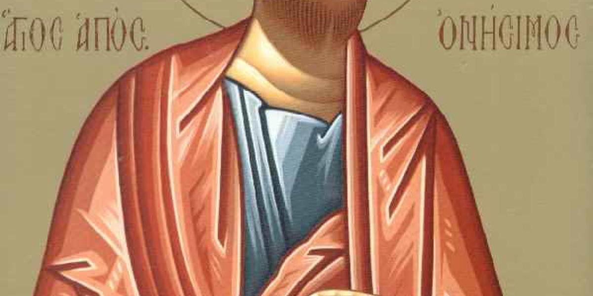 Sfântul Apostol şi Mucenic Onisim a fost unul din cei 70 de Apostoli ai Mântuitorului Iisus Hristos trimişi la propovăduire. În tinereţe, Onisim a fost rob al lui Filimon, un creştin înstărit din cetatea Colose. Greşindu-i stăpânului, Onisim a fugit la Roma, unde a fost întemniţat alături de Sfântul Apostol Pavel. De la Pavel, “Apostolul neamurilor”, a auzit pentru prima dată Onisim Evanghelia mântuirii şi tot de la el a primit Sfântul Botez. Sfântul Apostol Pavel fusese cel care îl adusese, mai înainte, pe Filimon la dreapta-credinţă, astfel că a mijlocit împăcarea între acesta şi robul Onisim. Ne stă mărturie epistola Sfântului Apostol Pavel către Filimon, care constituie cea mai scurtă carte cuprinsă în Sfânta Scriptură. În urma acestei epistole, Filimon l-a primit pe Onisim ca pe un frate, eliberandu-l apoi din robie.