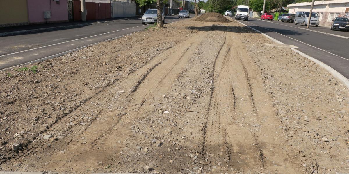 • proiectul de modernizare a acestei străzi din municipiu a presupus nu doar asfaltarea carosabilului și trotuarelor ci și transformarea în spațiu verde a unui loc care fusese în prealabil ocupat de garaje • ieri, constructorul care s-a ocupat de modernizarea străzii a adus pământ fertil, cu intenția de a-l împrăștia pe zona destinată pentru spațiu verde, fără a curăța, însă, resturile de moloz și pietre rămase de la demolarea fundațiilor fostelor garaje • reprezentanții administrației locale au precizat că dacă lucrarea nu va fi executată corespunzător nu va fi acceptată la plată