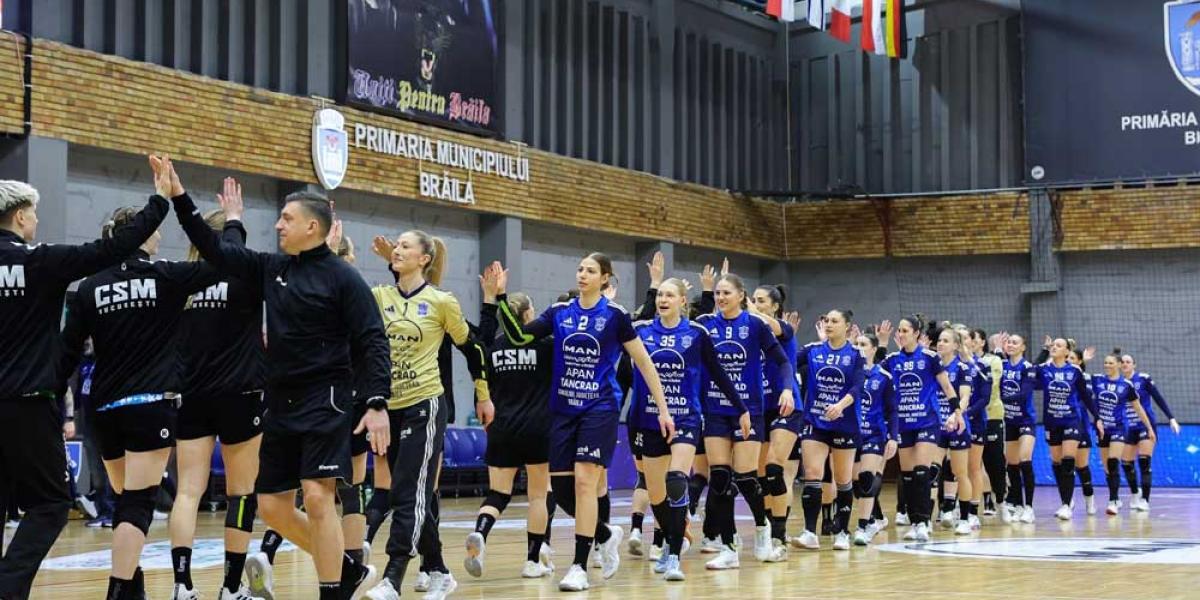 • HC Dunărea Brăila – CSM București, 34-36 • s-a jucat ca în cupele europene • MVP-ul partidei a fost Valeriia Kirdiasheva, cu 11 goluri marcate, dar punctele au plecat la București