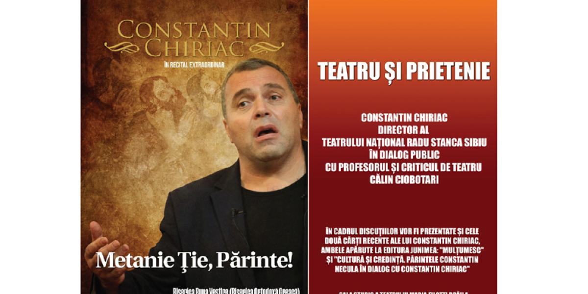 În aceeași zi, începând cu ora 19.00, Biserica Buna Vestire (Biserica Ortodoxă Greacă) va fi gazda unui recital extraordinar al președinteului Festivalului Internațional de Teatru Sibiu, Constantin Chiriac, intitulat ”Metanie Ție, Părinte !”. Intrarea este liberă. Recitalul încheie astfel evenimentele organizate în cadrul Festivalului Internațional de Teatru și Arte Performative organizat de Teatrul ”Maria Filotti”, între 18 și 28 septembrie.