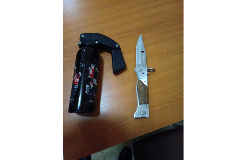 În data de 7 decembrie, echipajul de jandarmi aflat în patrulare pe raza municipiului, a depistat pe strada Odessa un grup de tineri. La vederea echipajului, aceștia au aruncat două obiecte, pe acoperișul unui garaj auto din zonă. În urma interceptării acestora și a constatării obiectelor aruncate pe garaj, respectiv un spray lacrimogen și un cuțit tip baionetă cu lungimea de 26 cm, s-a stabilit că acestea aparțin unui tânăr cu vârsta de 25 ani. În cauză a fost întocmit proces verbal de sesizare sub aspectul săvârșirii infracțiunii ”Portul sau folosirea fără drept de obiecte periculoase”, faptă prevăzută și pedepsită de Art. 372 din Cod Penal.