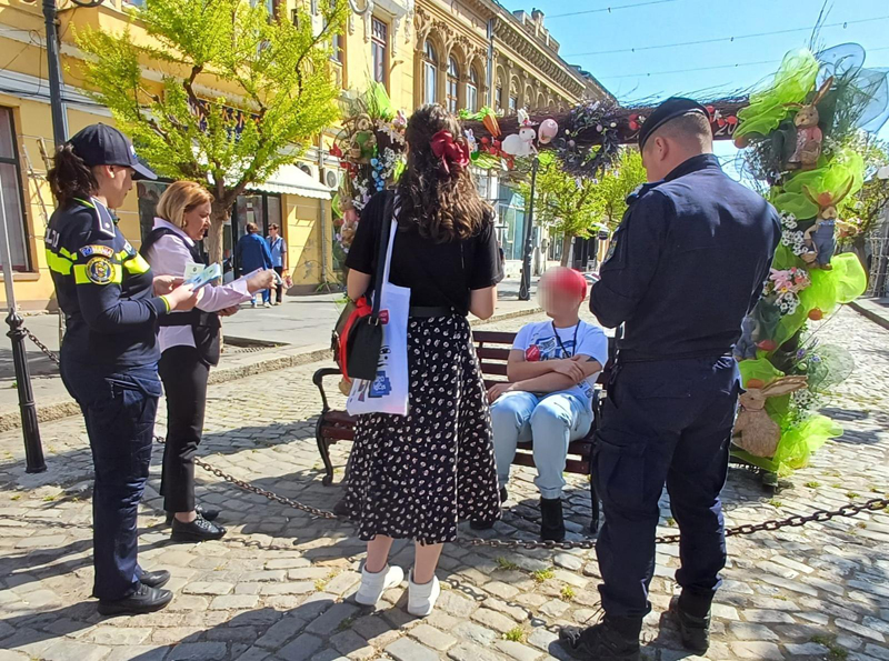 • la sfârșitul săptămânii trecute, polițiștii au desfășurat o acțiune preventivă, iar tinerii întâlniți au primit informații despre traficul și consumul de droguri, traficul de persoane, prevenirea abuzurilor sexuale și a discriminării • în plus, s-au dat sfaturi și informații pentru prevenirea unor posibile fapte antisociale