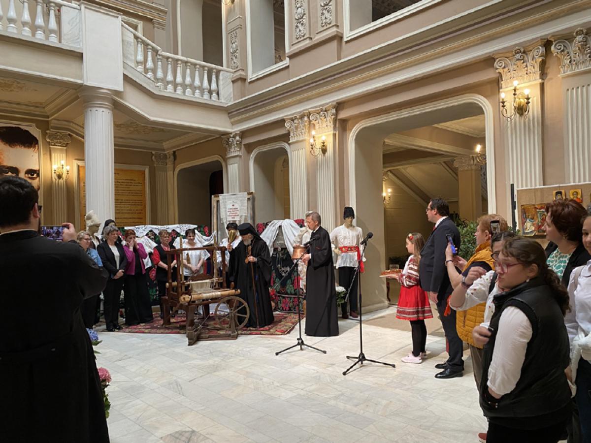 Expoziție pascală deschisă la Teatrul „Maria Filotti” în prezența ÎPS Arhiepiscop Casian, a unor directori de instituții și a autorităților locale.