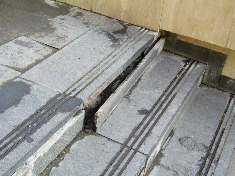 • plăcile desprinse au fost repuse pe poziție într-un mod destul de precar, motiv pentru care au început să cadă din nou • apa plină de cloramină afectează bazinele fântânilor arteziene și se dovedește periculoasă inclusiv pentru porumbeii de pe Faleză