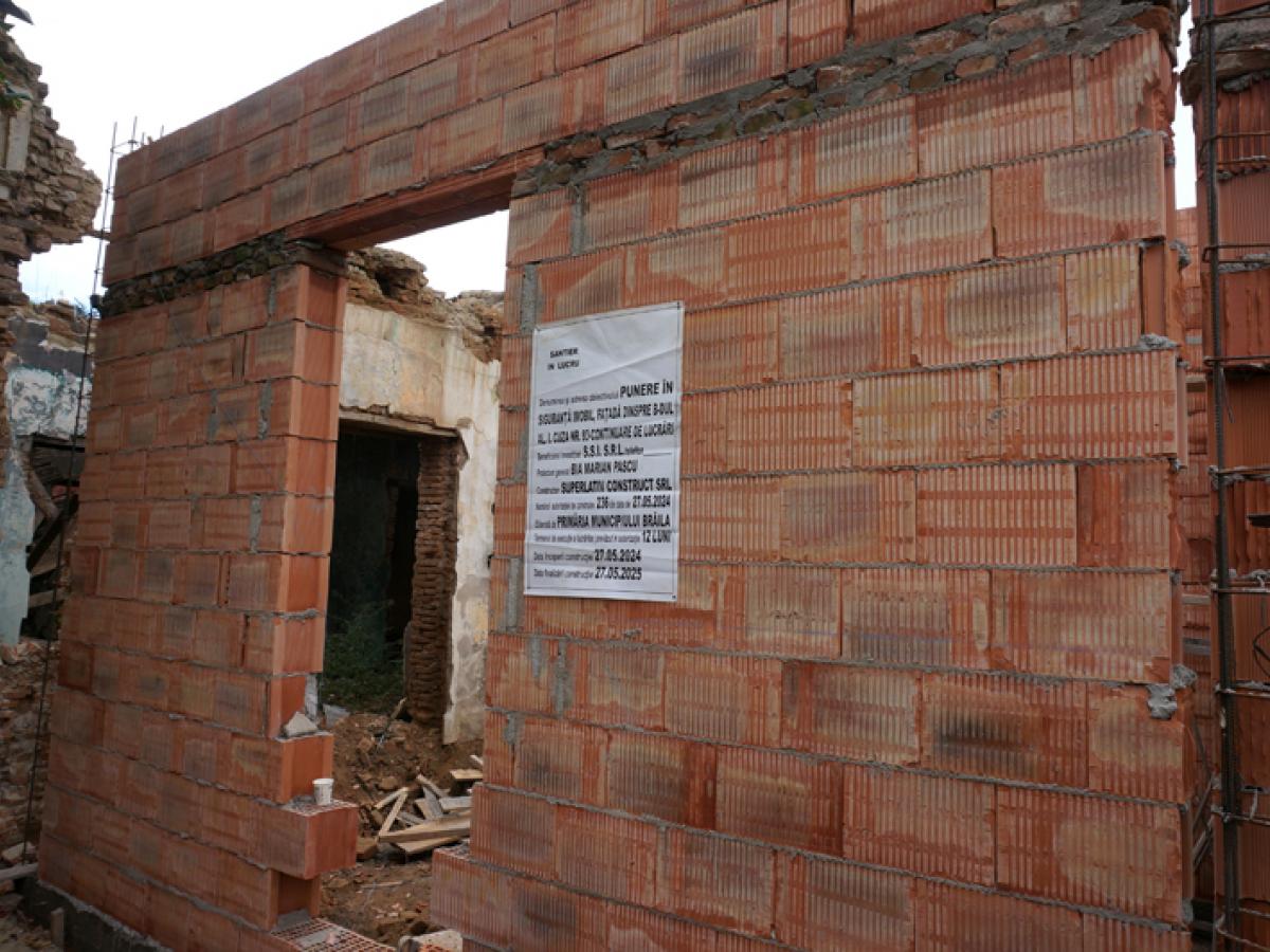 Ruina de pe bulevardul Cuza, care a stat ani de zile cu zidul dinspre stradă prăbușit, a intrat, în sfârșit, în reabilitare! După cum v-am mai informat, clădirea situată pe bulevardul Alexandru Ioan Cuza, nr. 83, a fost nelocuită foarte mult timp, iar din 2010 a început să se degradeze constant, totul culminând în urmă cu circa 6 ani, mai exact în decembrie 2019, când o mare bucată din zidul dinspre stradă s-a prăbuşit peste trotuar, iar plafonul camerei expuse s-a dărâmat la rândul său, formând un ditamai mormanul de moloz în interior. La vremea respectivă, Poliția Locală i-a aplicat o amendă de 2.500 lei proprietarului imobilului, firma “Societatea de Servicii Informatice” SRL Brăila, deoarece nu a luat măsuri pentru consolidarea construcției. Administratorul societății în cauză, Cristian Bordei, ne declara atunci că ar vrea să demoleze clădirea și să o reconstruiască de la zero în aceeași formă, dar că nu primește autorizațiile necesare de la autoritățile responsabile cu conservarea patrimoniului, deoarece imobilul se află într-o zonă protejată a municipiului, unde casele vechi nu pot fi dărâmate ci doar consolidate. Cert este că, din 2020 și până în urmă cu câteva luni, clădirea de pe Cuza 83 a rămas în stadiul de ruină, o pată de rușine pentru zona centrală în care se găsește. Poliția Locală a aplicat periodic somații și amenzi, însă în toți acești ani nu s-a luat nicio măsură pentru rezolvarea situației.