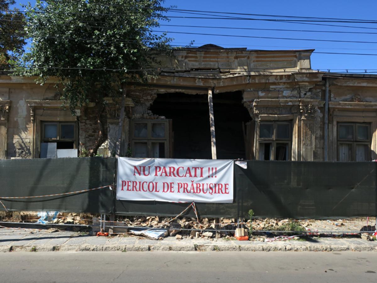 • clădirea de la nr. 83 avea, de ani de zile, zidul dinspre stradă prăbușit • recent, au început lucrările, însă pe șantier treaba înaintează foarte greu: termenul de finalizare prevăzut în autorizația de construire a fost deja depășit de luni de zile