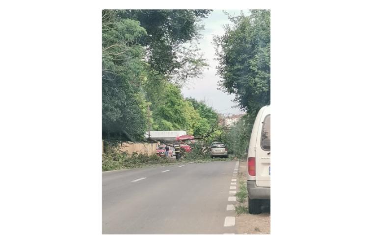 Copac căzut peste o mașină, pe ”drumul hotilor”. Nu sunt victime, doar pagube materiale